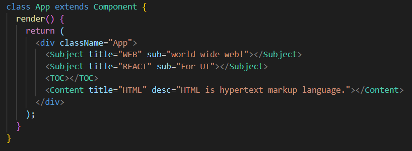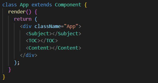 각 Component가 정의된 App.js파일은 다음과 같이 만들 수 있다.