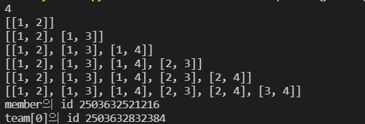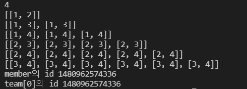 코드를 작성하면서 초반에 팀 구성을 확인하기 위해 team.append(member)를 했는데 이상한 결과가 나왔다.