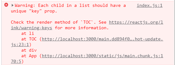 이는 react가 배열 안의 항목 관리를 위해 개발자에게 요청하는 것이며, 무시해도 상관 없지만 <li key={data[i].id}>로 간단하게 만들어주면 된다.