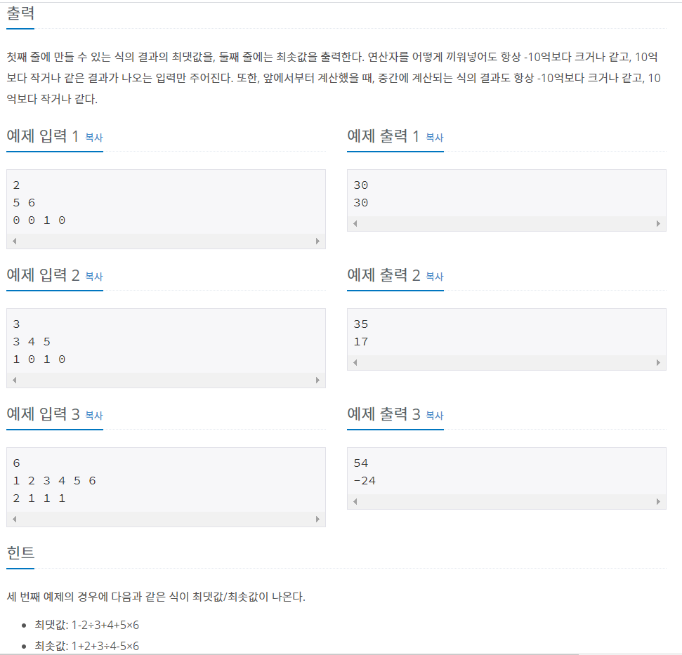 https://www.acmicpc.net/problem/14888