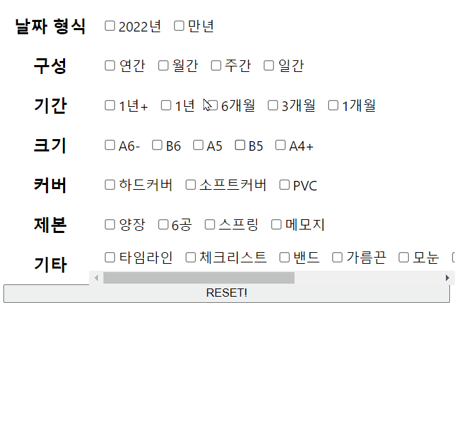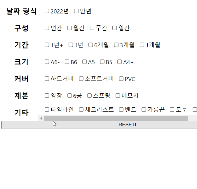 - Reset버튼을 만들어 한꺼번에 목록이 사라지도록 한다.