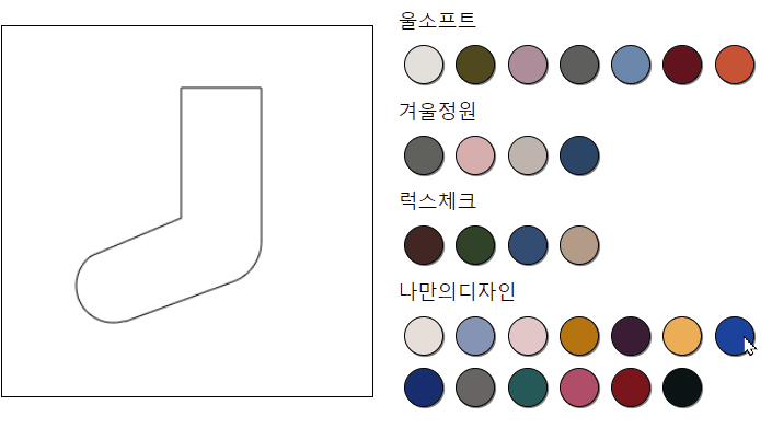각각의 palette 안에 색상들의 수만큼 colorDiv가 생성되었고, stroke의 색도 변경됨을 확인할 수 있다.