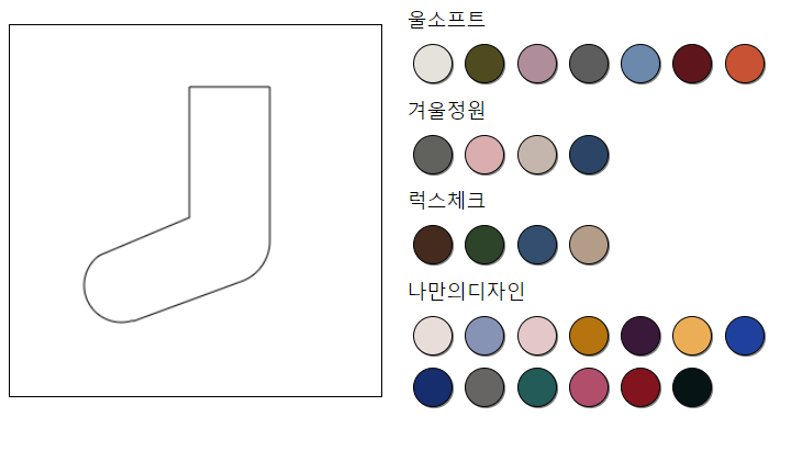 사용할 수 있는 실 색깔을 늘여놓고 마음대로 조합하려고 한다. 그런데 색의 종류가 너무 많아서 어떻게 할까 고민하다가 일일이 body영역에서 만들지 말고, script영역에서 함수를 이용해 만들어주었다.