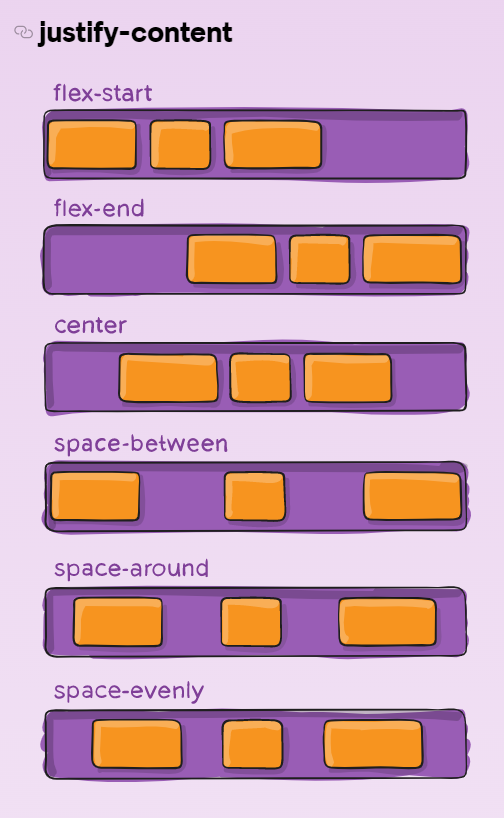 flex-direction의 방향대로 정렬하는 방법은 justify-content로 결정한다.