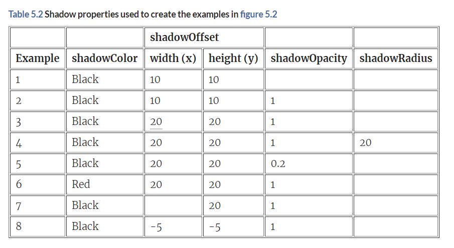 | iOS | shadowColor, shadowOffset, shadowOpacity, shadowRadius |