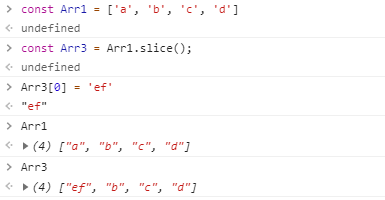 이 때 const Arr2 = Arr1 로 복제하고나면 @1002만 복사한다(@7105)