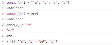 이 때 const Arr2 = Arr1 로 복제하고나면 @1002만 복사한다(@7105)