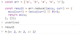 에서 괄호 안의 내용은, accu[curr]의 값이 있으면(truthy) accu[curr]을, 없으면 0을 반환한다.