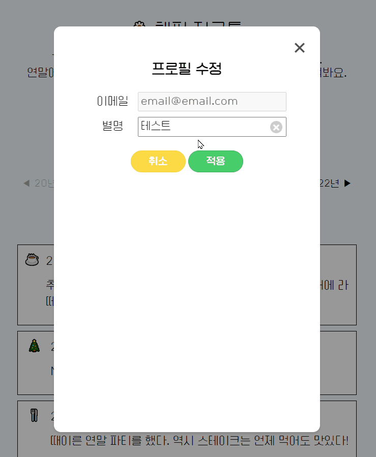 Modal(이하 모달)은 사용자의 이목을 끌기 위해 사용하는 화면전환 기법 중에 하나다. 이번 프로젝트에서는 사용자가 어떤 행동을 하였을 때 이 행동을 정말로 진행할 것인지 확인 하는 용도로 사