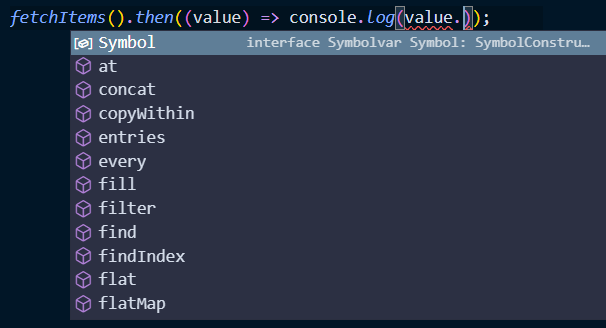 위의 fetchItems 는 제너릭을 통해 string[]을 반환할 것이라고 명시해뒀다.