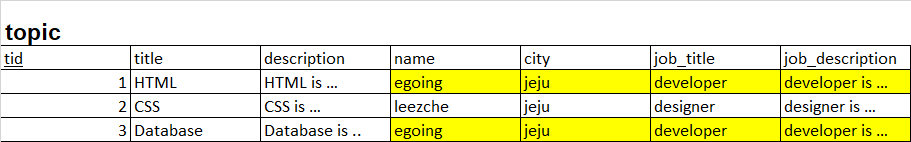 table은 한 가지 주제만 가지고 있어야 한다 -> 중복이 없는 것을 목표로