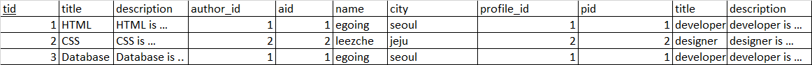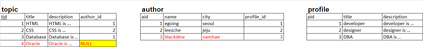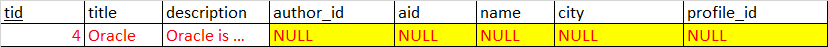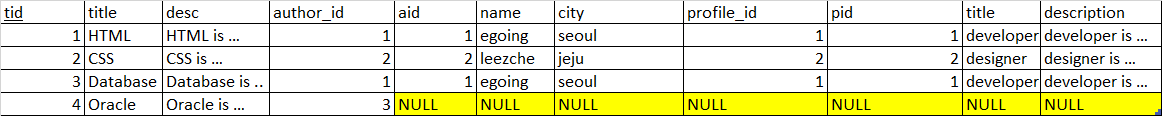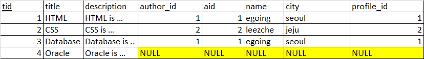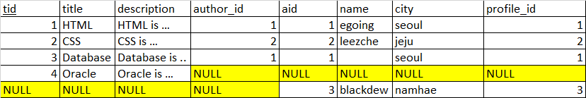 tid=4인 경우는 author가 NULL이므로 profile까지 NULL 로 row가 채워져있다.
