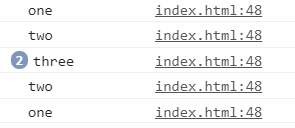 그래서 가장 상위의 one부터 console에 나타나며, 차례로 two, three가 나타난다.