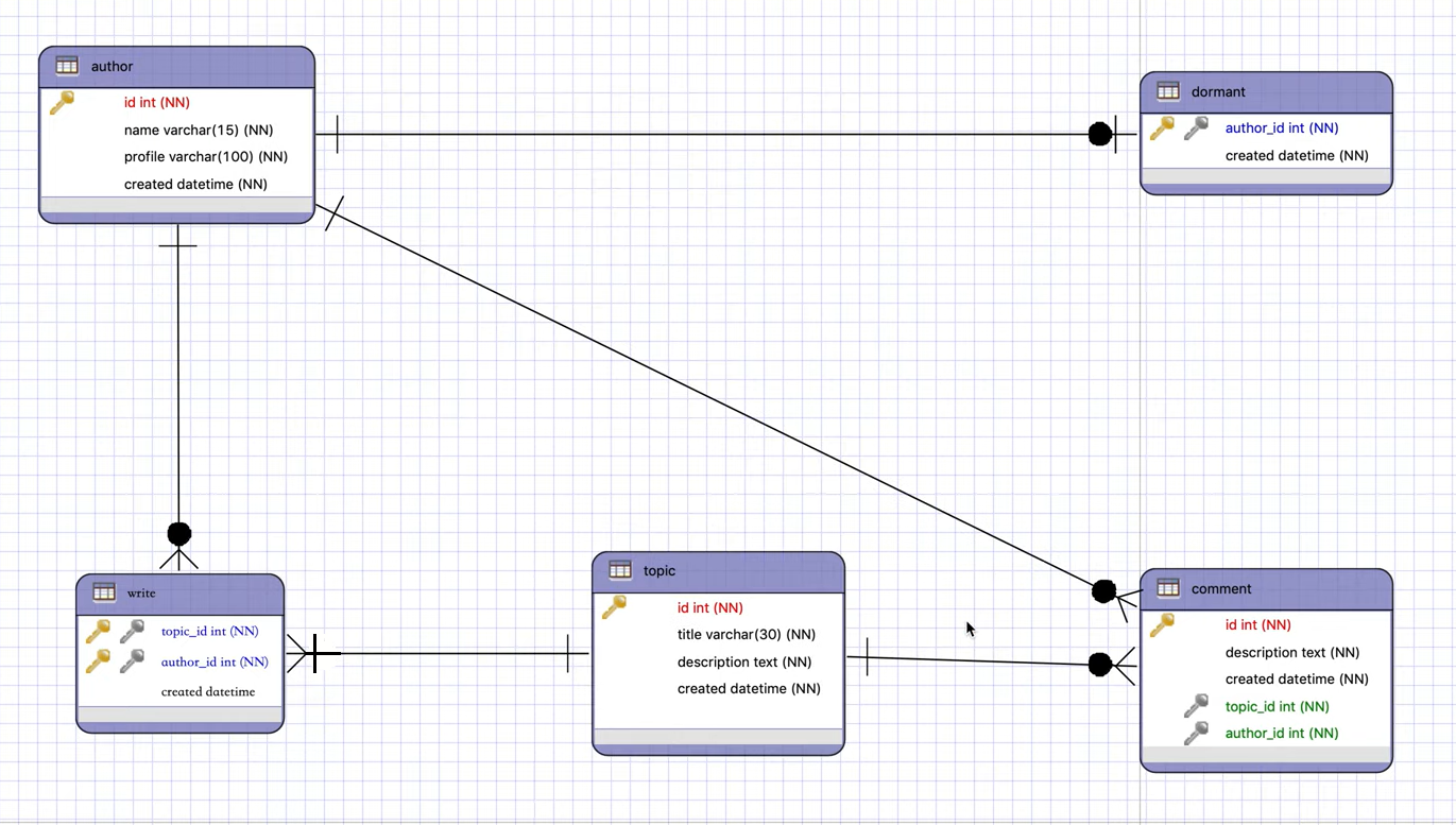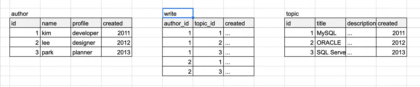 mapping table에는 두 개의 테이블(author, topic)이 결합됐을 때 의미있는 정보들을 추가할 수 있다.(created: 작성일)