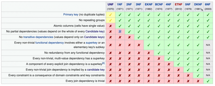 각 행의 각 컬럼의 값들이 모두 원자적이어야 한다