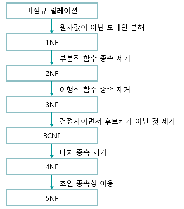 그러므로 순차적으로 UNF →1차→2차→3차 정규형으로 변환해야 가능하다.