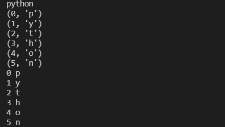 for 다음 변수가 하나면 (index, value)로 이루어진 tuple을 반환하고,