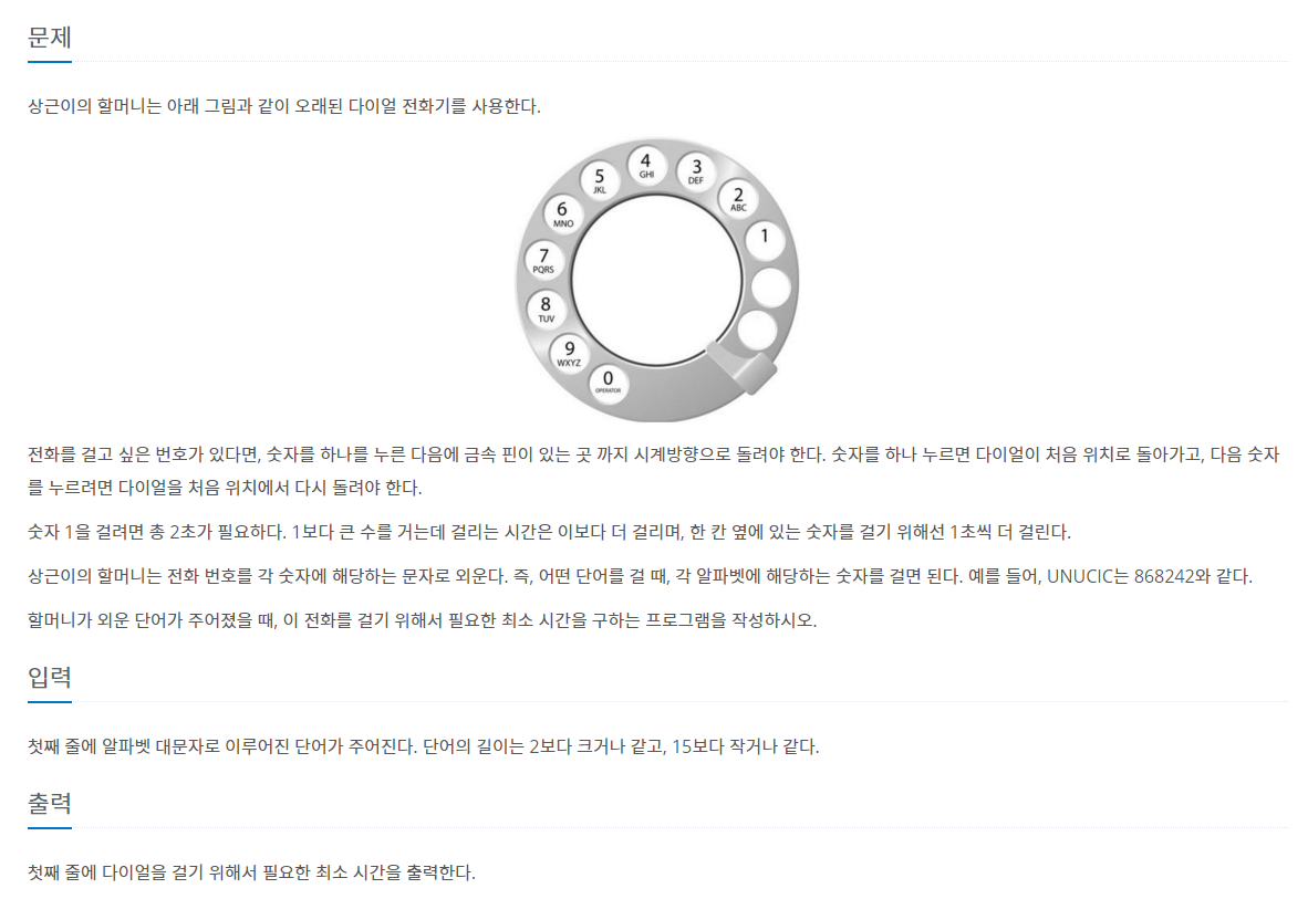 있으면 dial에서 i가 몇 번째 인덱스인지 찾아서 index+3을 전체 시간인 n에 더해준다.