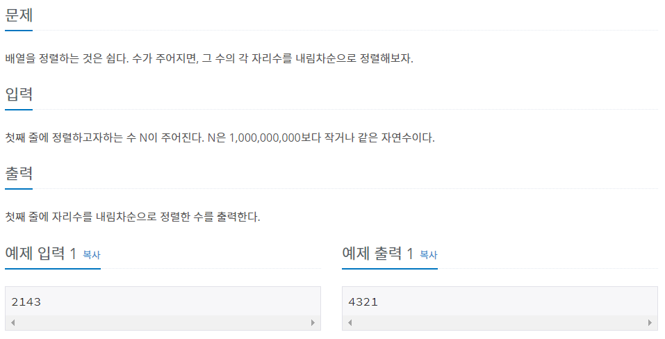 https://www.acmicpc.net/problem/1427