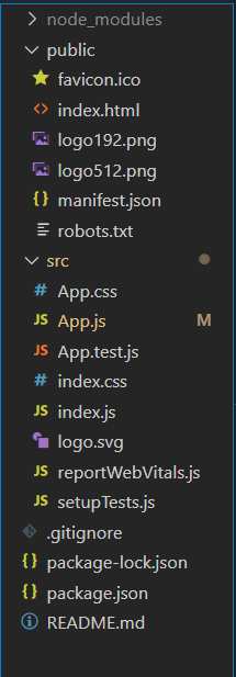 실행된 웹앱의 메인페이지는 public 폴더에 index.html 페이지다.