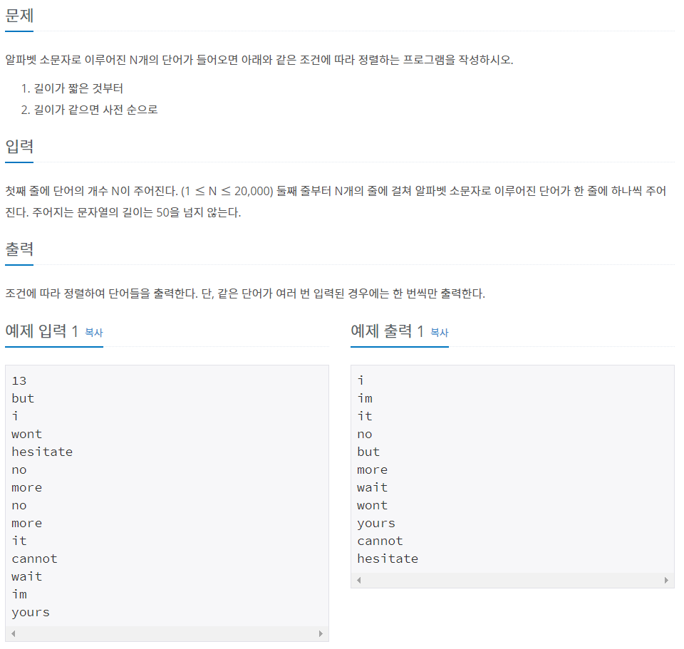 2. 단어의 길이가 짧은 것 부터(단어의 길이에 따라 오름차순)